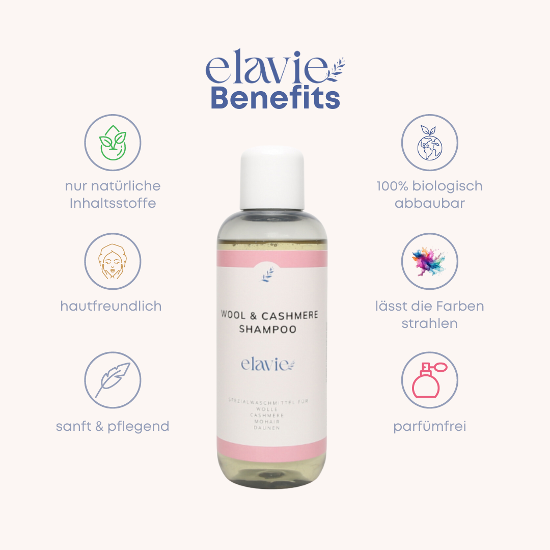 3. Wool & Cashmere Shampoo - alle Kleidungsstücke aus Wolle, Cashmere, Mohair oder Daunen. Meistens sind dies Wollpullover, Funktionswäsche aus Wolle/Cashmere. Auch deine Daunenjacke oder deine Daunendecke kannst du mit Wool & Cashmere Shampoo waschen.